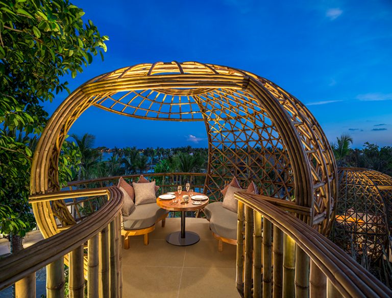Just a short 30-minute yacht ride from the airport, the expansive all-villa retreat is spread out across three islands, offering plenty of opportunities for serene moments and private nooks. Capitalizing on all of its space, the resort will provide guests with 11 distinctive dining venues to choose from, presenting a variety that’s unmatched in the Maldives. You’ll find Middle Eastern flatbreads and mezzes at Yasmeen; Chinese cuisine, including Peking duck fresh out of a wood-fired oven, at Li Long; healthy and holistic fare using the freshest ingredients from the property’s herb garden at Glow; and a barbecue grill restaurant by Dave Pynt, the chef behind Michelin-starred Burt Ends in Singapore. But what will inevitably become the most romantic (and Instagram-worthy) option is Terra, a treetop concept where you’ll dine in your own nest and enjoy incredible views of the ocean.