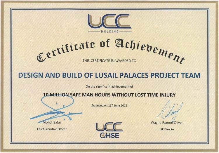 September 13, 2019UCC Celebrated 10 Million LTI-Free Safe Man-hours for the Design and Build Lusail Palaces Project
