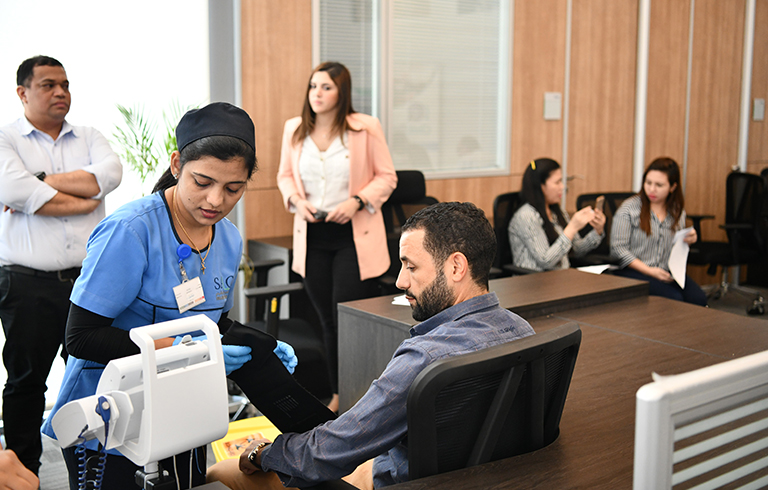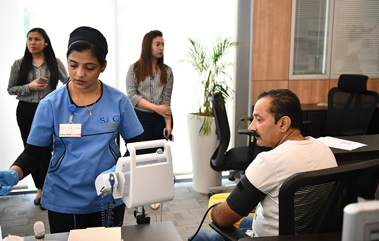 Employees registered for complementary medical check-ups during the event